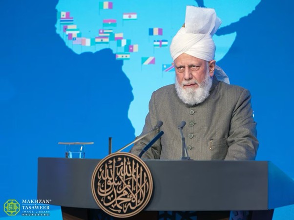 إمام الجماعة الإسلامية الأحمدية يلقي الخطاب الرئيس في مؤتمر منظمة الإنسانية أولاً الدولي لعام 2025، بمناسبة مرور 30 ​​عامًا على تأسيسها