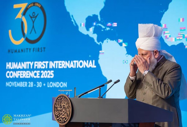 في 30/11/2025، ألقى إمام الجماعة الإسلامية الأحمدية العالمية، حضرة ميرزا ​​مسرور أحمد، الخليفة الخامس، الخطاب الرئيس في المؤتمر الدولي لمنظمة "الإنسانية أولاً"، الذي عُقد بمناسبة مرور ثلاثين عامًا من الخدمة الإنسانية التي تقدمها هذه المنظمة.
