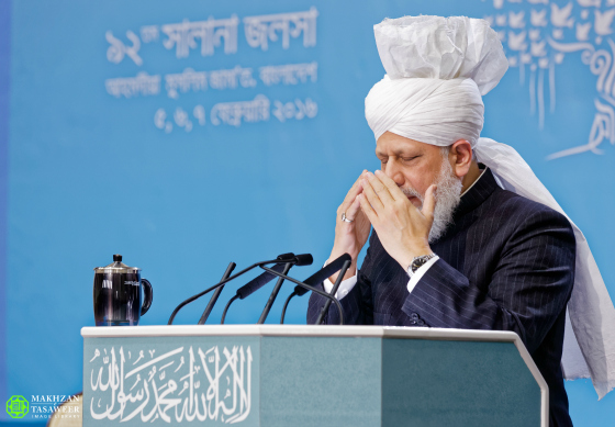 اختتم إمام الجماعة الإسلامية الأحمدية، الخليفة الخامس، حضرة ميرزا مسرور أحمد، الجلسة السنوية الـ 92 للجماعة الإسلامية الأحمدية في بنغلادش يوم 07/02/2016 بخطاب ملهم للإيمان.