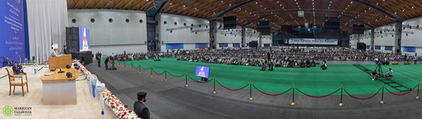 حضرة ميرزا مسرور أحمد يخطب بالمتطوعين والعاملين في الجلسة السنوية