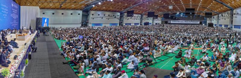 وخلال كلمته، تحدث حضرته عن استمرار تحقق نبوءات مؤسس الجماعة الإسلامية الأحمدية، حضرة ميرزا غلام أحمد القادياني (عليه الصلاة والسلام) فيما يتعلق بانتشار الأحمدية -الإسلام الحقيقي-.