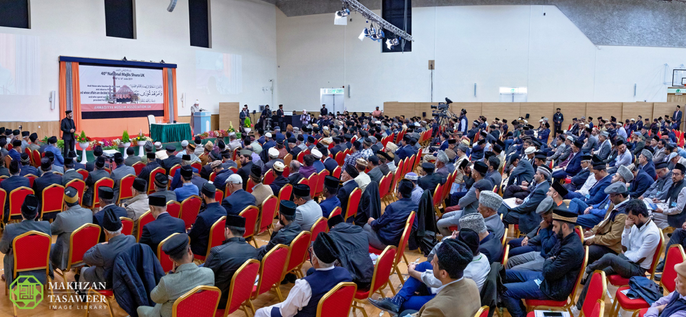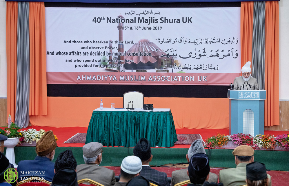 في 16/06/2019، ألقى إمام الجماعة الإسلامية الأحمدية العالمية، الخليفة الخامس، حضرة ميرزا مسرور أحمد، خطابًا ملهمًا للإيمان في مجلس الشورى الوطني للجماعة الإسلامية الأحمدية في المملكة المتحدة.