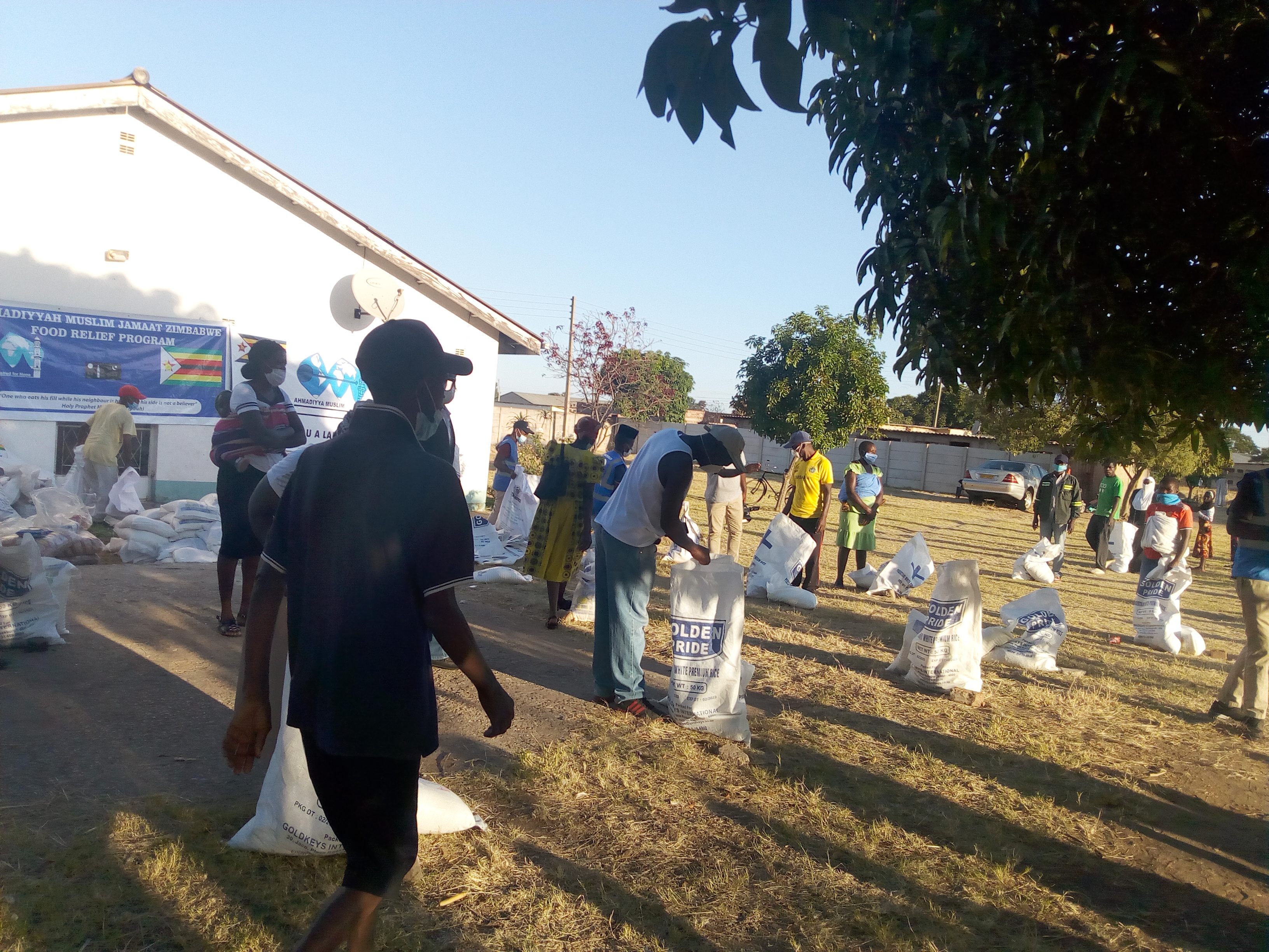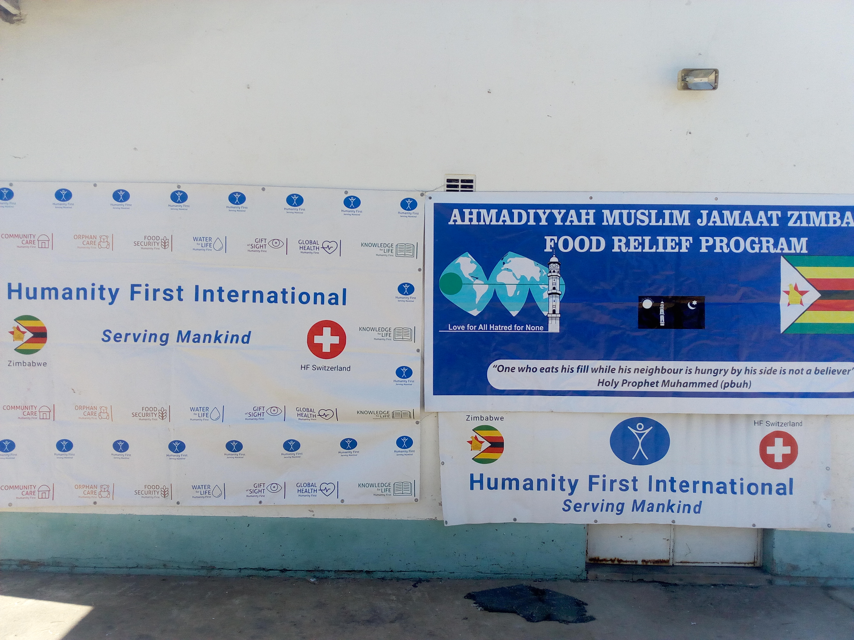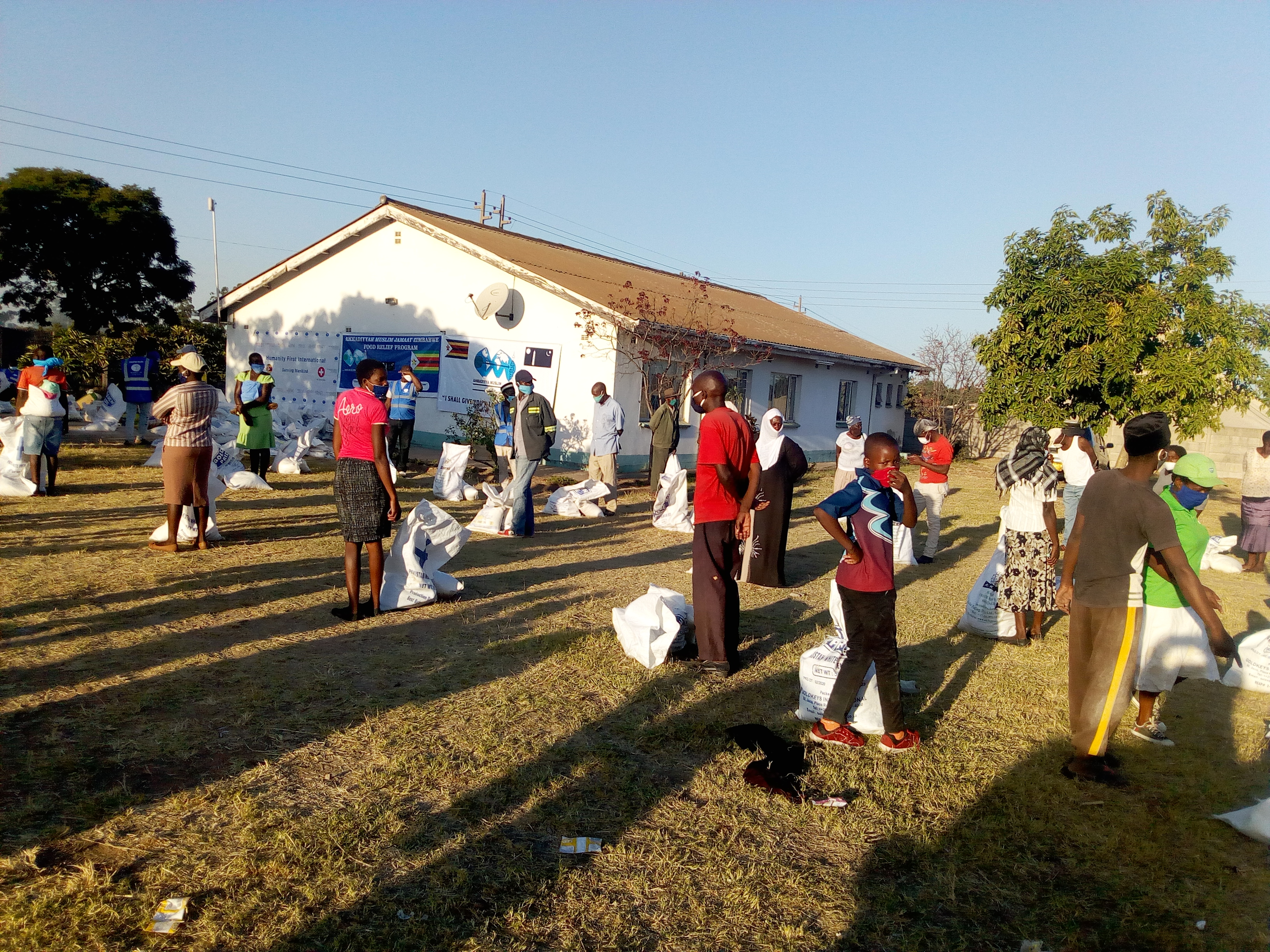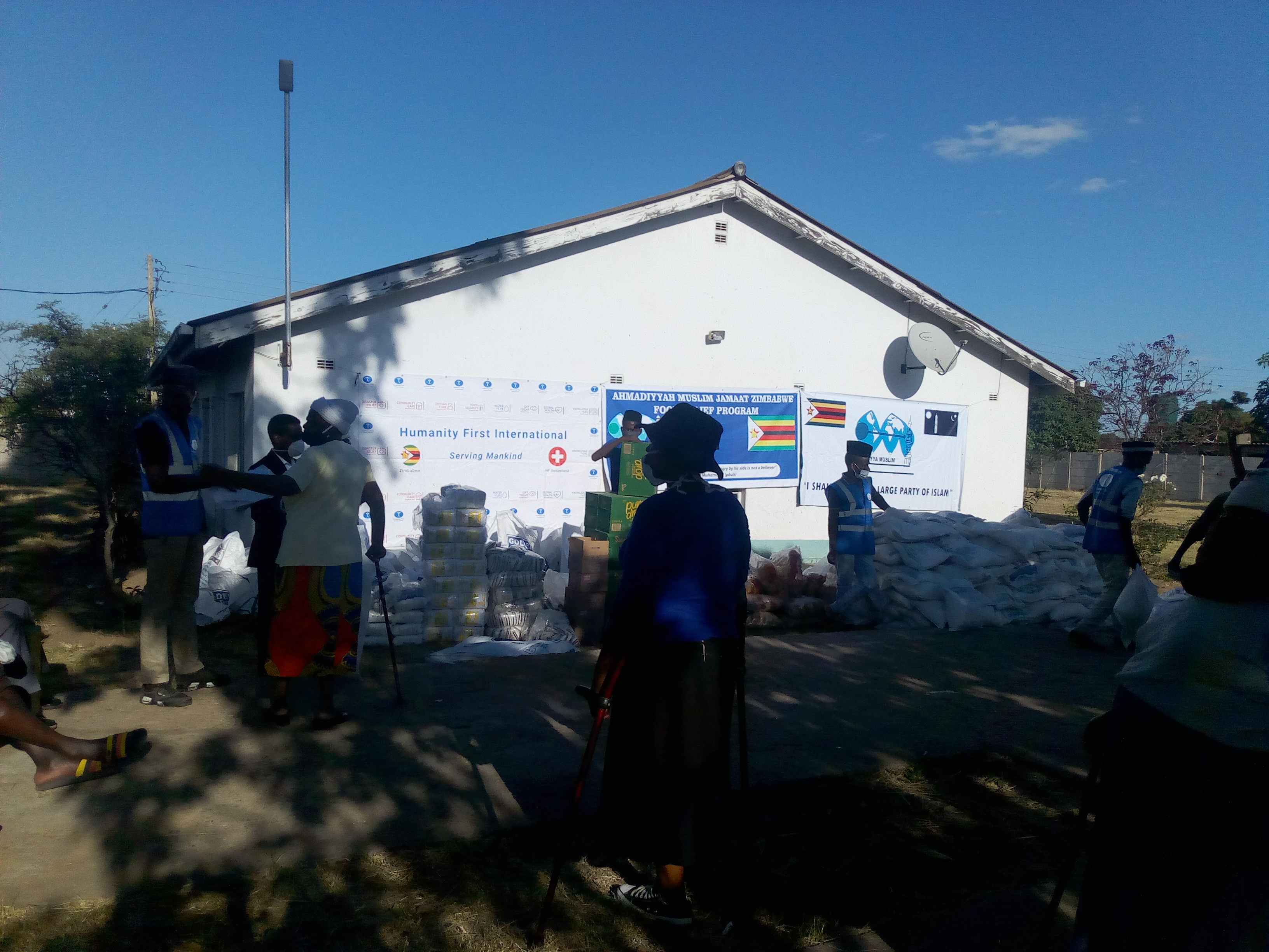 وتم توزيع الطرود الغذائية من قبل الجماعة الإسلامية الأحمدية ومنظمة الإنسانية أولًا في زمبابوي بالتعاون مع منظمة الإنسانية أولًا في سويسرا على ما يزيد على 665 عائلة من مختلف الأديان والمذاهب، ويبلغ مجموع أفراد هذه العائلات 3400 فرد تقريبًا.