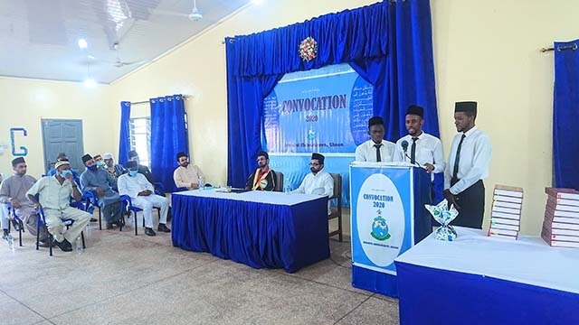 تم بفضل الله تعالى انعقاد حفل تخرج طلاب دفعة 2020 من "جامعة المبشرين" معهد تأهيل الدعاة بدرجة المبشر، غانا يوم الإثنين 30 أغسطس / آب 2020م برئاسة مولانا فهيم أحمد خادم المحترم رئيس الجامعة.