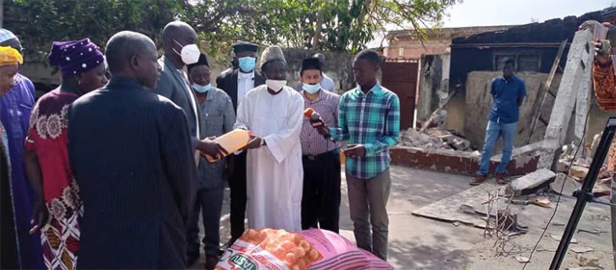 في 13 يناير / كانون الثاني 2021م وبإشراف من السيد بابا إف تراولي أمير الجماعة الإسلامية الأحمدية في غامبيا تم توزيع المساعدات الغذائية والنقدية على العائلات المتضررة بالنيران التي اجتاحت المناطق السكنية في العاصمة بانجول مؤخرًا.