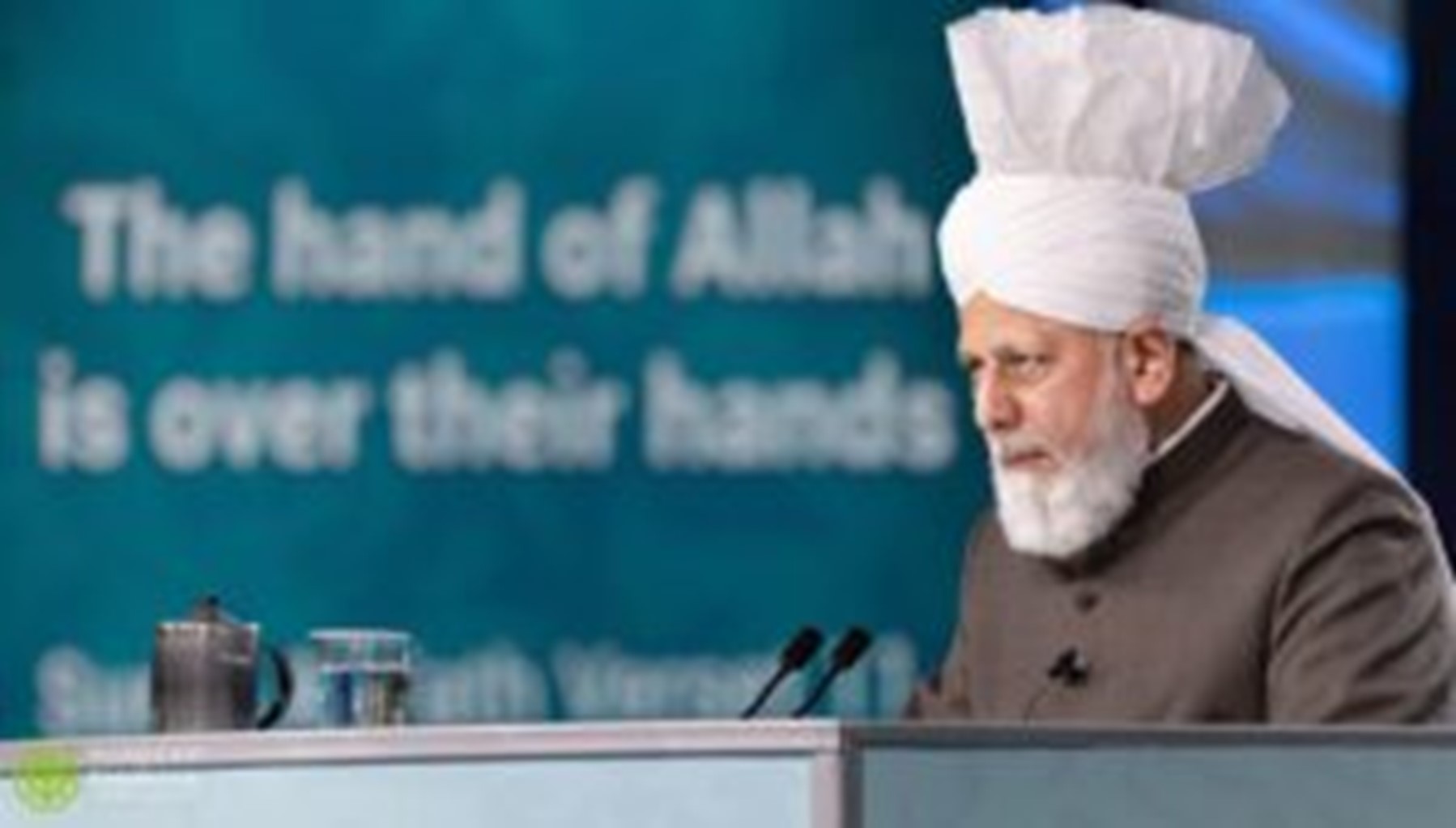 اختتم إمام الجماعة الإسلامية الأحمدية العالمية، الخليفة الخامس، حضرة ميرزا مسرور أحمد، المؤتمر السنوي السادس والخمسين (الجلسة السنوية) للجماعة الإسلامية الأحمدية في المملكة المتحدة في 07/08/2022 بخطاب ملهم للإيمان.