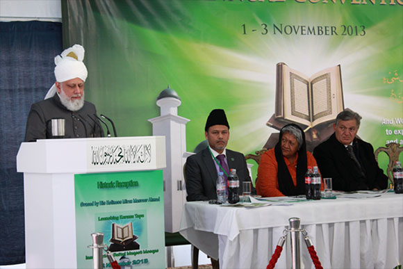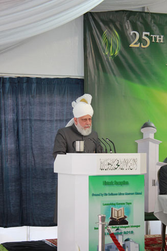 وقد بدأ حضرة الخليفة كلمته مشيدًا بالموقف المتسامح الذي أظهره السكان المحليون حيث قال: