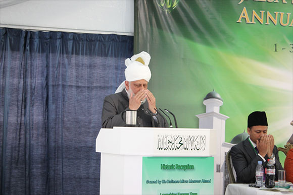 وخلال الكلمة الرئيسية، تحدث حضرة ميرزا مسرور أحمد عن الأهداف الحقيقية للمساجد، والتزام الإسلام بالحرية الدينية، كما ناقش الاشكال الحديثة للرق وكرر مخاوفه من أن العالم يتجه نحو حرب عالمية مدمرة.