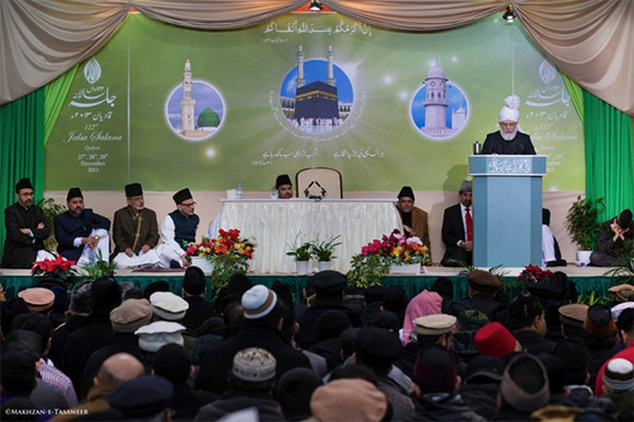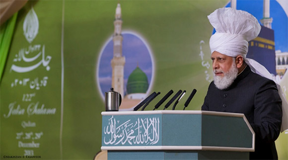 ألقى إمام الجماعة الإسلامية الأحمدية حضرة ميرزا مسرور أحمد خطابًا تاريخيًا ملهِمًا في ختام الجلسة السنوية 122 في الهند وذلك يوم الأحد 29 /12/ 2013 حيث تحدث حضرته عبر الأقمار الصناعية من مسجد بيت الفتوح في لندن. وقد حضر أكثر من 17000 شخص الجلسة السنوية في قاديان، بينما تجمع حوالي 5000 في لندن لحضور الخطاب الختامي.