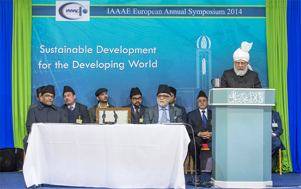 في 22 /02/2014، ألقى إمام الجماعة الإسلامية الأحمدية، الخليفة الخامس حضرة ميرزا مسرور أحمد، أيده الله تعالى بنصره العزيز، كلمة أمام ممثلي وأعضاء الجمعية الدولية للمعماريين والمهندسين الأحمديين في أوروبا (IAAAE).