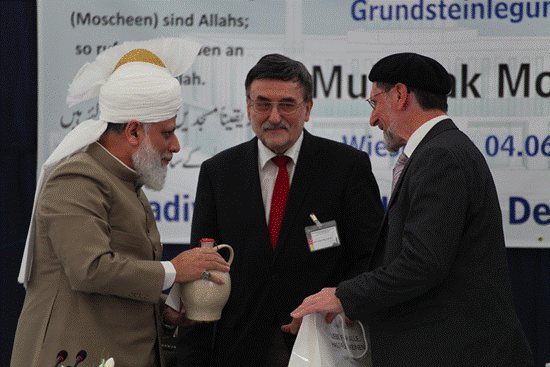 "الآن بعد أن رأوا وسمعوا رسالتنا، أود أن أطلب من ضيوفنا مساعدتنا من خلال طمأنة الآخرين الذين قد لا يزال لديهم تحفظات حول الإسلام. لقد رأيتم بأنفسكم أن رسالتنا ليست سوى رسالة السلام والرحمة تجاه جميع الناس".