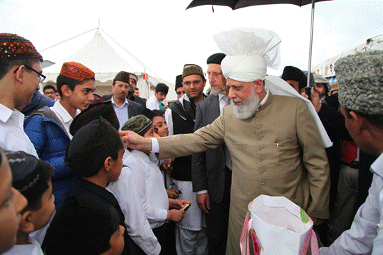 وقبل مغادرته، وزع حضرته الشوكولاتة على الأطفال الأحمديين