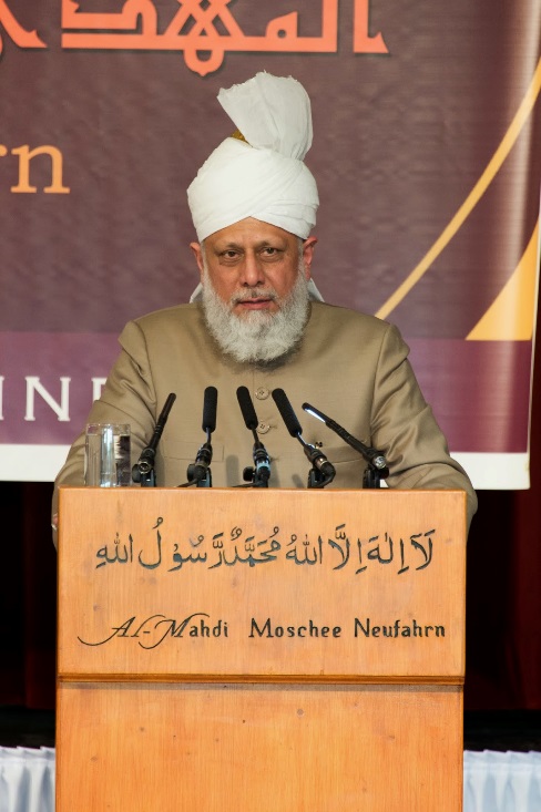 "اليوم يوم مهمٌ جدًا ليس فقط بالنسبة للجماعة الإسلامية الأحمدية ولكن لمدينة نيوفهارن وشعبها لأن حضرة ميرزا مسرور أحمد قد أتى إلى هذه المنطقة ... وهذا المسجد ليس لكم فقط وإنما لجميع الناس."