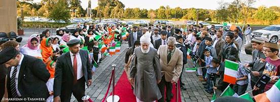 في 22 /09/ 2014، وصل إمام الجماعة الإسلامية الأحمدية العالمية الخليفة الخامس، حضرة ميرزا مسرور أحمد إلى جمهورية إيرلندا في زيارته الثانية للبلاد.