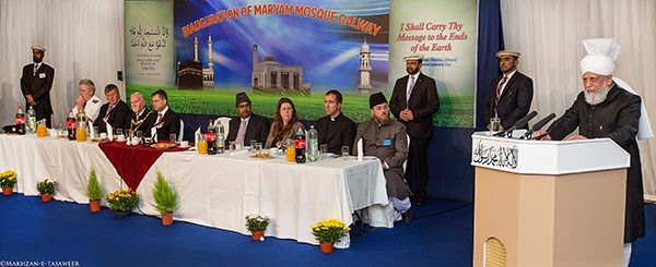 في مساء يوم 26 /09/ 2014، ألقى إمام الجماعة الإسلامية الأحمدية، الخليفة الخامس حضرة ميرزا مسرور أحمد الخطاب الرئيسي في حفل استقبال خاص أقيم بمناسبة افتتاح مسجد مريم في غولواي في إيرلندا.