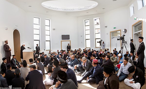 وقد وصل حضرة الخليفة إلى مبنى المسجد عند الساعة الواحدة ظهرًا وبعد إزاحة الستار عن اللوحة التذكارية ألقى أمير المؤمنين خطبة يوم الجمعة التي بثت على الهواء مباشرة إلى جميع أنحاء العالم عبر قناة MTA الدولية.