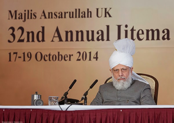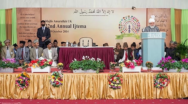ألقى إمام الجماعة الإسلامية خليفة المسيح الخامس حضرة ميرزا مسرور أحمد في 19/10/ 2014، الخطاب الختامي لاجتماع مجلس أنصار الله الثاني والثلاثين في المملكة المتحدة.