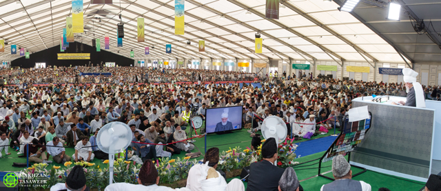 كما قدم حضرة ميرزا مسرور أحمد تقريرا عن أنشطة الجماعة الإسلامية الأحمدية وتقدمها المستمر في جميع أنحاء العالم.