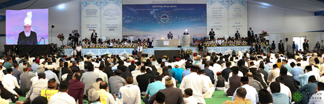 وقال حضرة ميرزا مسرور أحمد في كلمته إنه في حين أن الجلسة تجمع روحاني لزيادة الإيمان بالله، فهي أيضًا وسيلة لزيادة المشاعر الإنسانية والإخاء.