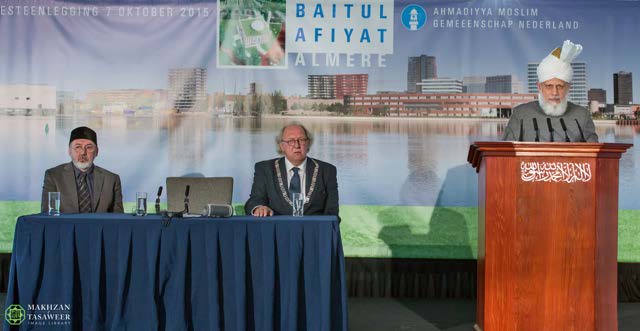 يسر الجماعة الإسلامية الأحمدية أن تعلن أنه يوم 07/10/2015 قام حضرة ميرزا مسرور أحمد، إمام الجماعة الإسلامية الأحمدية العالمية والخليفة الخامس بوضع حجر الأساس لأول مسجد للجماعة في مدينة ألمير الهولندية.
