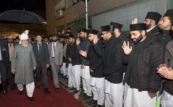 وصل إمام الجماعة الإسلامية الأحمدية، الخليفة الخامس حضرة ميرزا مسرور أحمد إلى مسجد بيت السُّبُّوح في فرانكفورت يوم 14 /10/ 2015 حيث سافر حضرته من ننسبيت في هولندا عن طريق البر، وعند العبور إلى ألمانيا كان في استقباله أمير الجماعة الإسلامية الأحمدية في ألمانيا عبد الله فاغيسهاوسر ومختلف المسؤولين الذين اصطحبوا حضرته إلى فرانكفورت.