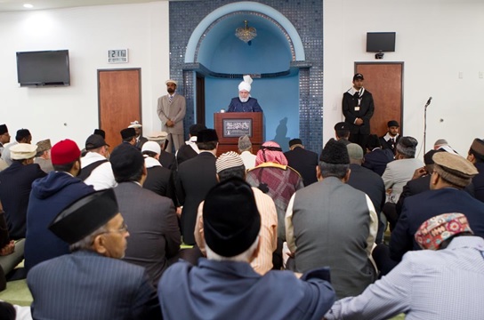 لأول مرة حضرة ميرزا مسرور أحمد يلقي خطبة الجمعة