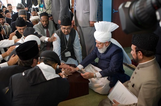 الأحمديين بترديد عهد البيعة على يد أمير المؤمنين نصره الله.