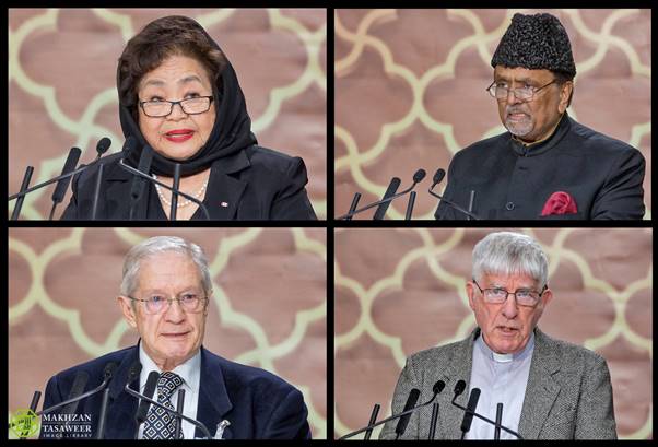 "أريد أن أشكركم، حضرة الخليفة بشكل خاص لأنه باستماعي في كثير من الأحيان إلى خطاباتكم وإلى العديد من اللقاءات التي أجريتموها في كثير من أنحاء العالم، لم تكونوا فقط مروجي ومبتكري ما نحتاج إليه بشدة اليوم، والذي هو ثقافة الحوار، بل كنتم بطلا في هذا، وقدوة.".