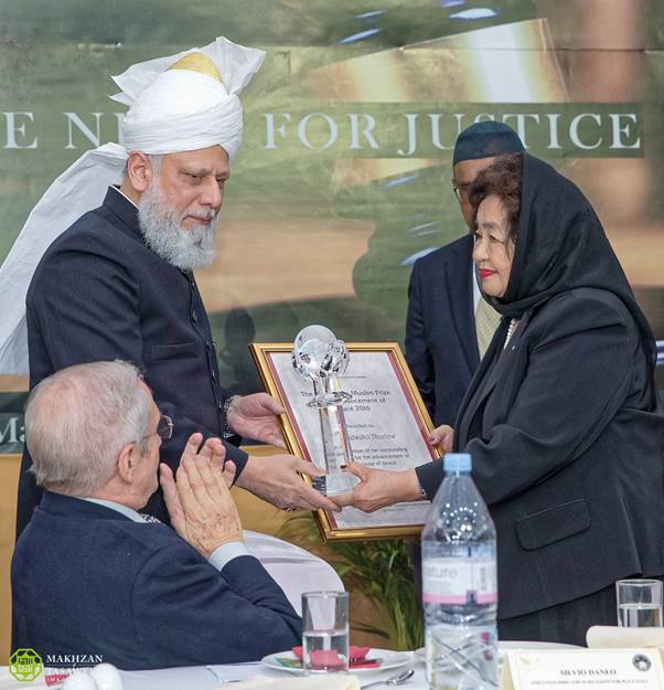 وقالت السيدة سيتسوكو ثورلو، التي تلقت جائزة الجماعة الإسلامية الأحمدية للسلام: