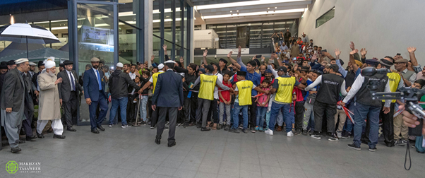 وأثناء الجولة، زار حضرة ميرزا مسرور أحمد مختلف الإدارات المكلفة بتنظيم وإدارة هذا الحدث. واطلع على الترتيبات كما تفقد موقع الجلسة أيضًا.