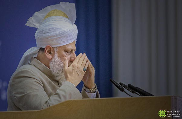 حضرة ميرزا مسرور أحمد يخطب بالمتطوعين والعاملين في الجلسة السنوية