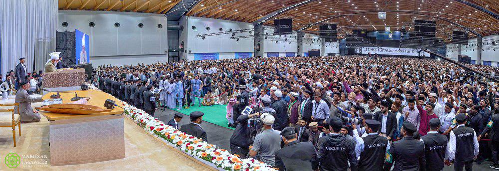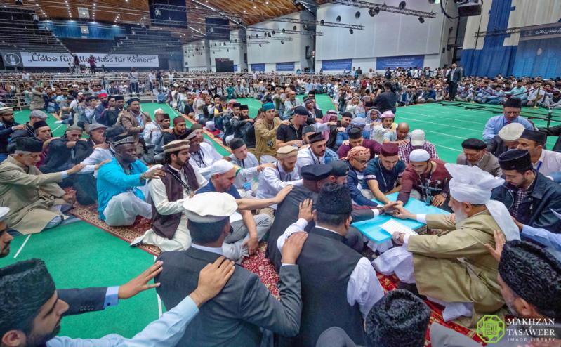 وفي وقت سابق من اليوم، شارك أكثر من 39000 مسلم أحمدي والذين حضروا الحدث في كارلسروه في عهد البيعة عهد الولاء والطاعة على يد الخليفة الخامس للمسيح الموعود (عليه الصلاة والسلام)، وخلال الحفل، بايع بعضهم لأول مرة.