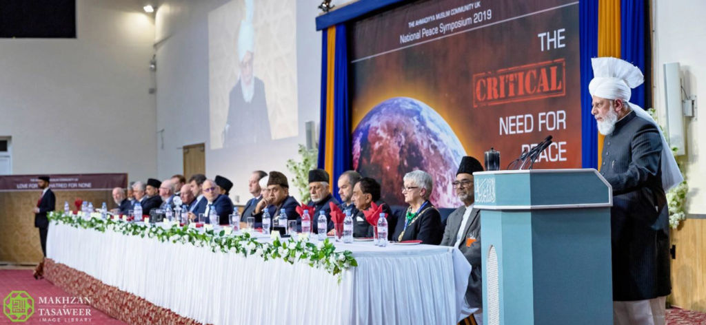 يوم 09/03/2019، ألقى إمام الجماعة الإسلامية الأحمدية العالمية الخطاب الرئيس في منتدى السلام الوطني السادس عشر الذي استضافته الجماعة الإسلامية الأحمدية في المملكة المتحدة.