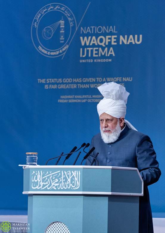 في 07/04/2019 ألقى إمام الجماعة الإسلامية الأحمدية العالمية، خليفة المسيح الخامس، حضرة ميرزا مسرور أحمد خطابا في الجلسة الختامية للاجتماع الوطني للواقفين ناو في المملكة المتحدة، وهم الذين نذروا حياتهم من أجل الخدمة السلمية للإسلام.