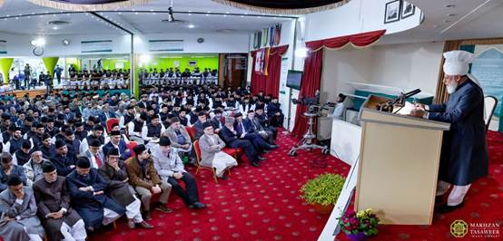 وعقب تسليم شهادات التخرج، ألقى حضرة ميرزا مسرور أحمد خطابًا ملهِمًا للإيمان ذكّر فيه الأئمة الشباب أن عليهم أن يسعوا باستمرار إلى زيادة وتطوير معارفهم الدينية وفهمهم لدينهم.