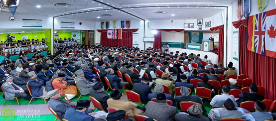 وقد ترأس الحفل إمام الجماعة الإسلامية الأحمدية العالمية، الخليفة الخامس، حضرة ميرزا مسرور أحمد وألقى الخطاب الرئيس.