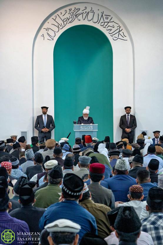 وشدد حضرته على ضرورة أن يقدم المسلمون الأحمديون أعلى مستوى من الأخلاق وأن يلتزموا بمعايير كونهم أتباعًا للمسيح الموعود (عليه الصلاة والسلام)..