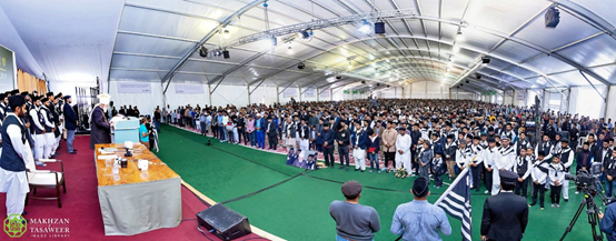 ثم قدم حضرته معايير التضحية والروحانية التي قدمها أصحاب رسول الله (صلى الله عليه وسلم) كمثال للحاضرين.
