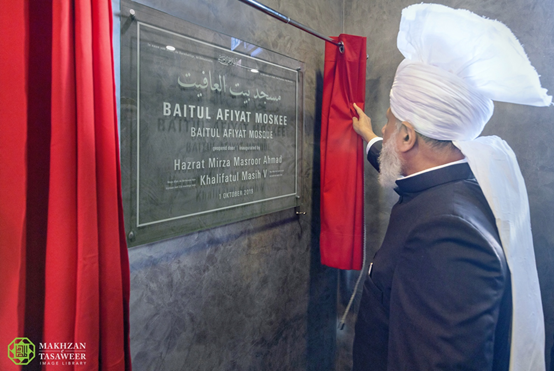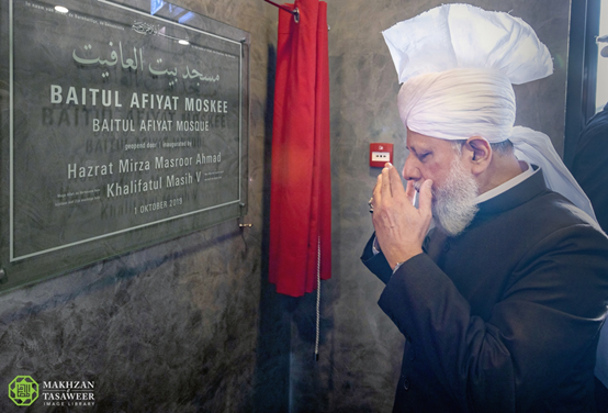 يسر الجماعة الإسلامية الأحمدية أن تعلن أنه في 01/10/2019، افتتح إمام الجماعة الإسلامية الأحمدية، خليفة المسيح الخامس، حضرة ميرزا مسرور أحمد، مسجد بيت العافية في ألميره في هولندا.
