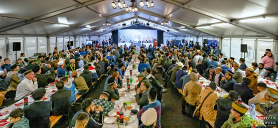 "أود أيضًا أن أغتنم هذه الفرصة لتذكير المسلمين الأحمديين بأن عليهم دائمًا الالتزام بأعلى مستويات الأخلاق واتباع تعاليم الإسلام الحقيقية وخدمة مجتمعهم المحلي."