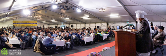 "عندما يحتاج أحد منكم إلى مساعدتنا، نتعهد بأن نكون هناك لمساعدته ومد يد العون له بأي طريقة ممكنة. أنا واثق من أن المسلمين الأحمديين المحليين سوف يأخذون على محمل الجد التزاماتهم تجاه المجتمع المحلي وسوف يسعون دائمًا إلى المساهمة بشكلٍ فعال في هذه المدينة، ولأن يكونوا مواطنين مخلصين يهتمون بشغف بمجتمعهم المحلي".