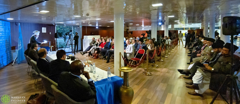 أثنى إمام الجماعة الإسلامية الأحمدية العالمية خلال خطابه على الأهداف الأساسية لمنظمة الأمم المتحدة للثقافة والعلوم والتي تتضمن المساهمة في عملية بناء السلام الدائم، والعمل على سيادة القانون، وحماية حقوق الإنسان والحفاظ على التراث الثقافي لمختلف الجماعات والأمم والسعي لضمان مستقبل زاهر للعالم. ثم قال إنه منذ أكثر من 1400 سنة أمر الإسلام المسلمين بالسعي لتحصيل نفس الأهداف من أجل تحقيق السلام والازدهار للبشرية.