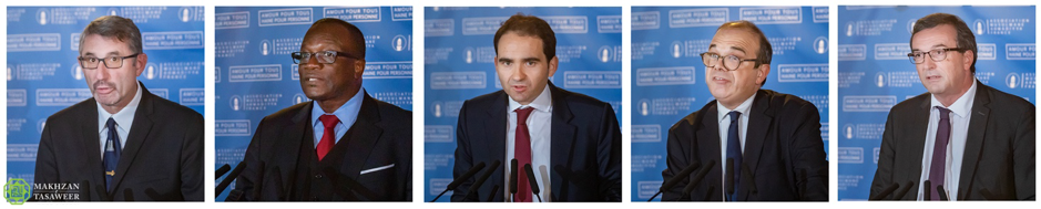 "أنا سعيد جدًا لوجودي هنا اليوم للترحيب بزيارة خليفة الجماعة الإسلامية الأحمدية إلى فرنسا. أود أن أرحب بكم في فرنسا في هذا البلد الذي لديه عادة الترحيب بالديانات المختلفة على أساس مبدأ العلمانية ".
