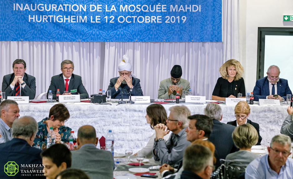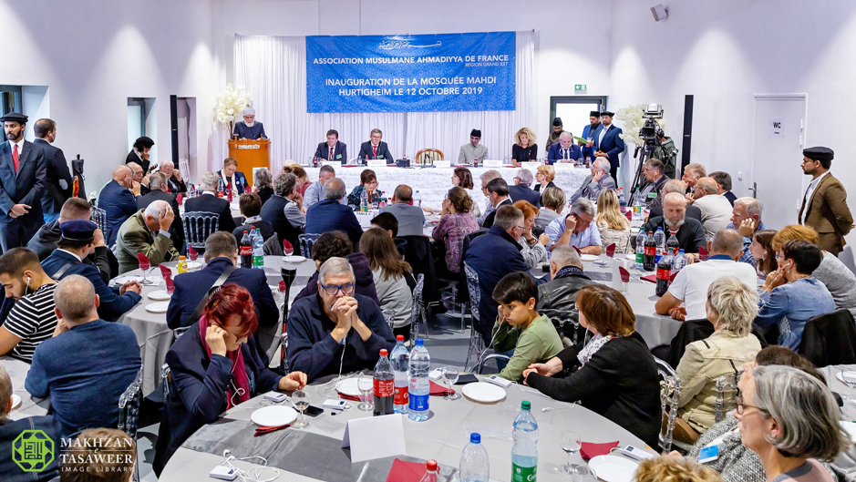 بعد افتتاح مسجد المهدي في ستراسبورغ في 11/10/2019 من قبل إمام الجماعة الإسلامية الأحمدية العالمية، الخليفة الخامس حضرة ميرزا مسرور أحمد، شرّف حضرته حفل الاستقبال الرسمي الذي عقد بهذه المناسبة يوم 12/10/2019.