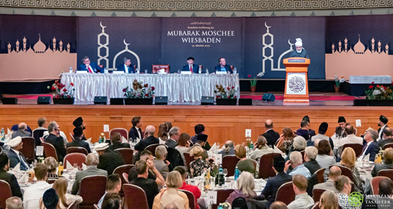 هذا وقبل الخطاب الرئيس، استمع الحاضرون إلى أمير الجماعة الإسلامية الأحمدية في ألمانيا عبد الله فاغسهاوزر، الذي تحدث عن تاريخ الجماعة الإسلامية الأحمدية في فيسبادن. وكذلك ألقى عدد من الضيوف الكلمات.