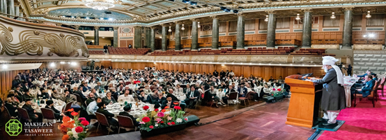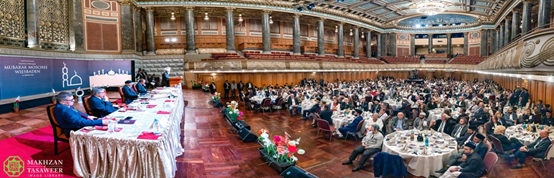هذا وقد اختُتم البرنامج الرسمي بالدعاء الصامت الذي أمَّه حضرة الخليفة، تبع ذلك طعام العشاء.