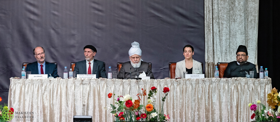 كما أثنى حضرته على جهود "الطاولة المستديرة" في مدينة فولدا حيث ينضم الناس من جماعات دينية مختلفة معًا من أجل زيادة التفاهم المتبادل بينهم. واستطرد شارحًا كيف أنه في زمن مؤسس الجماعة الإسلامية الأحمدية حضرة ميرزا غلام أحمد عليه السلام قد عُقد برنامجٌ لحوار الأديان ارتكز على مبدأ الاحترام المتبادل.
