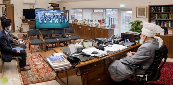 في 08/11/2020، تشرف دعاة الجماعة الإسلامية الأحمدية في بنغلاديش والواقفون لحياتهم لخدمة الدين بلقاءٍ افتراضي مع إمام الجماعة الإسلامية الأحمدية العالمية، خليفة المسيح الخامس حضرة ميرزا مسرور أحمد.