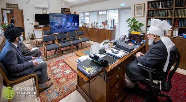 في 14/03/2021 تشرف دعاة الجماعة الإسلامية الأحمدية في غانا بلقاء افتراضي مع إمام الجماعة الإسلامية الأحمدية العالمية، الخليفة الخامس، حضرة ميرزا مسرور أحمد.