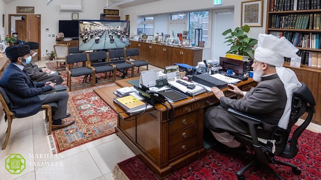 أعضاء من مجلس أطفال الأحمدية في الولايات المتحدة الأمريكية يتشرفون بلقاء افتراضي مع إمام الجماعة الإسلامية الأحمدية العالمية.